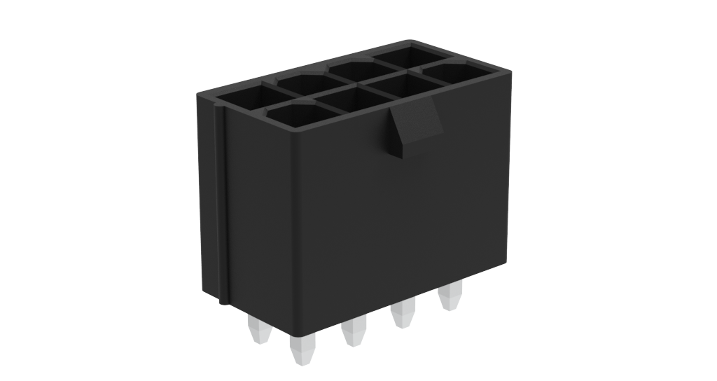 Mini power, Vertical, Dual row, 4.2mm pitch, 8 positions , 100μin Tin, 3.50mm tail length, LCP, Black, TRAY