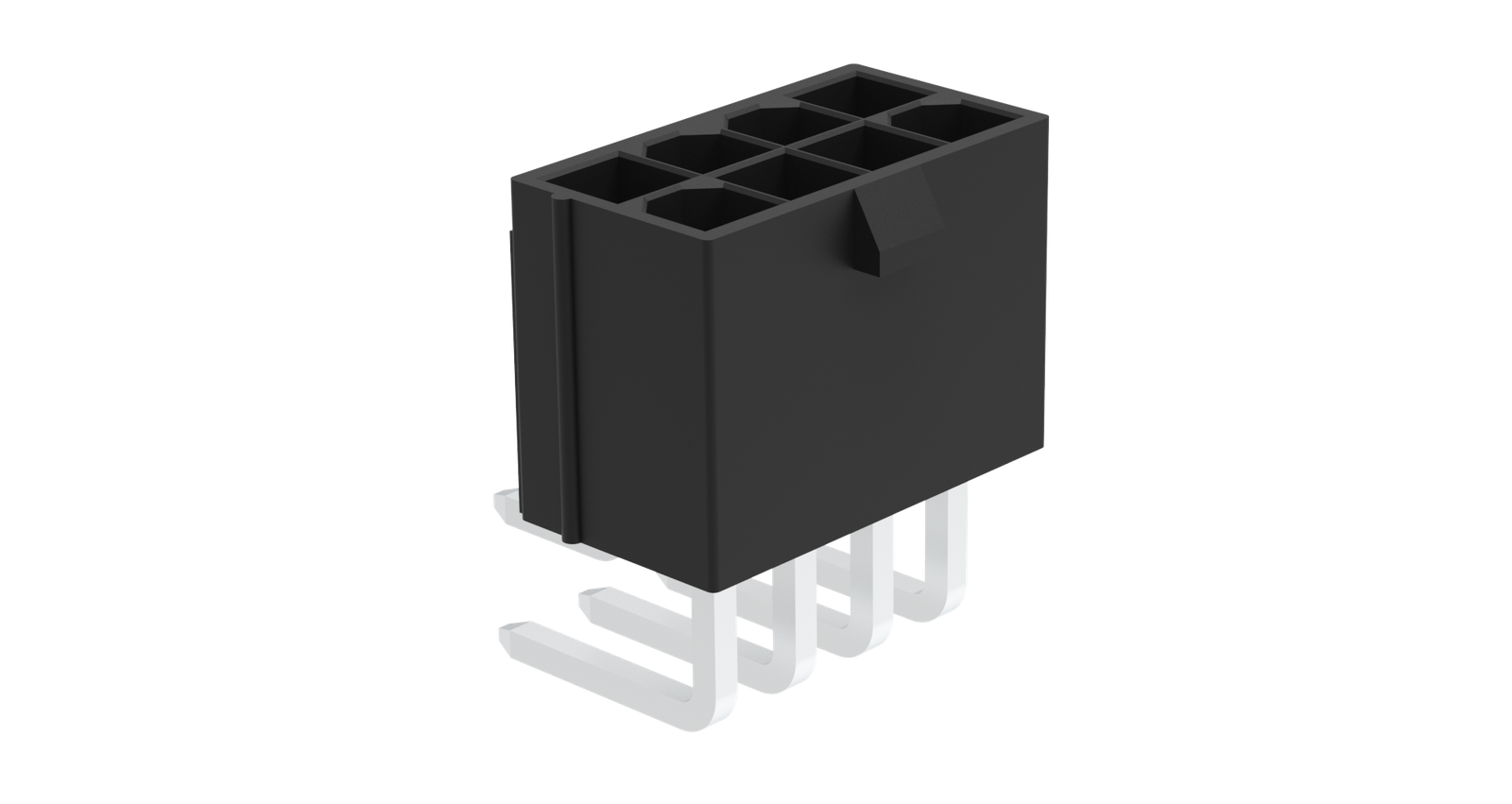 Mini power, Right Angle, Dual row, 4.2mm pitch, 8 positions , 100μin Tin, 3.60mm tail length, LCP, Black, TRAY