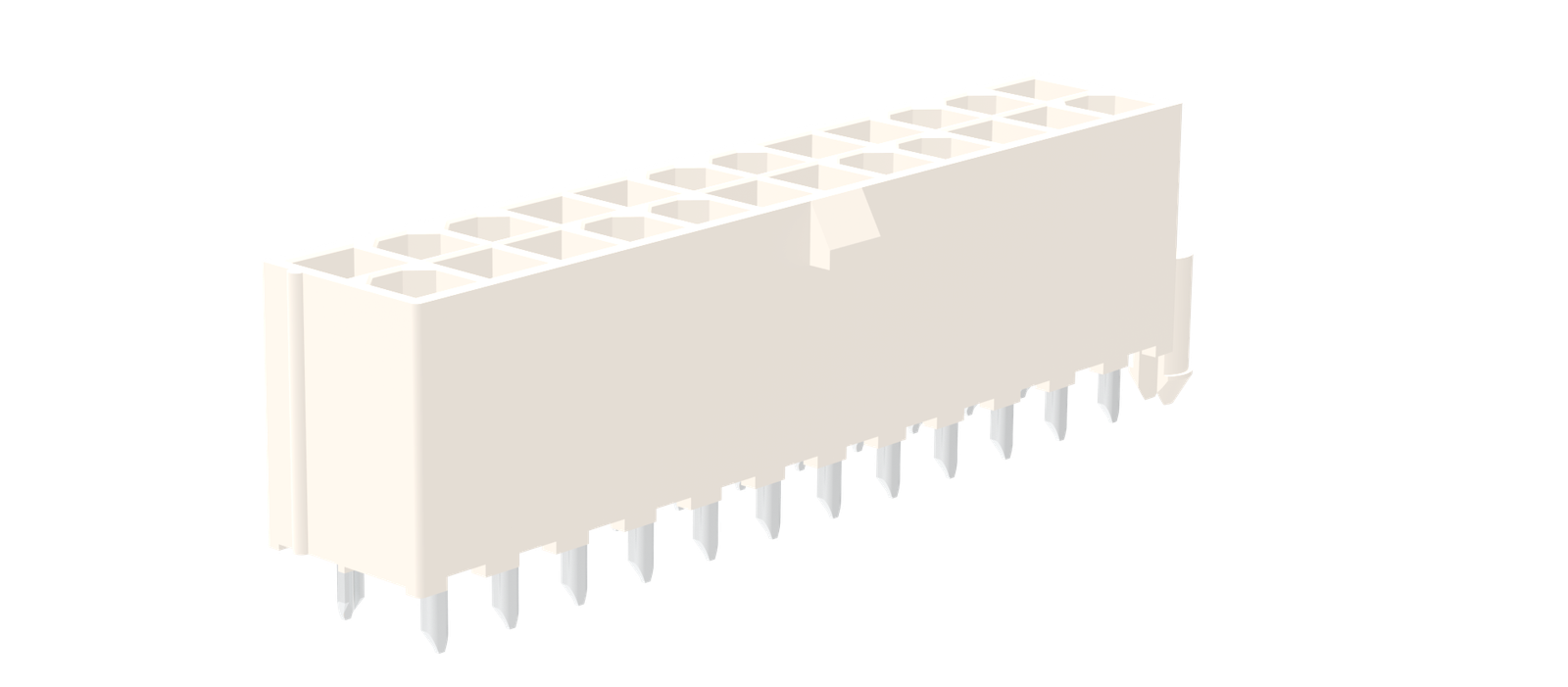 Mini power, Vertical, Dual row, 4.2mm pitch, 24 positions , 100μin Tin, 3.50mm tail length, 1 post, LCP, Natural , TRAY