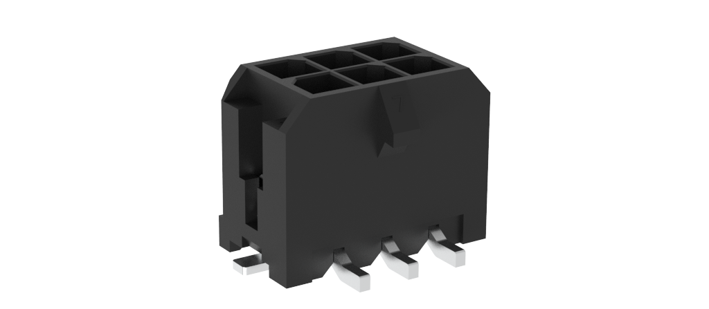 Micro Power 3.0 Connector System – G881 Series, Wire to Board connector, , Vertical, Dual row, 3.0mm pitch, 06 positions , 100μin Tin, LCP, Black, REEL