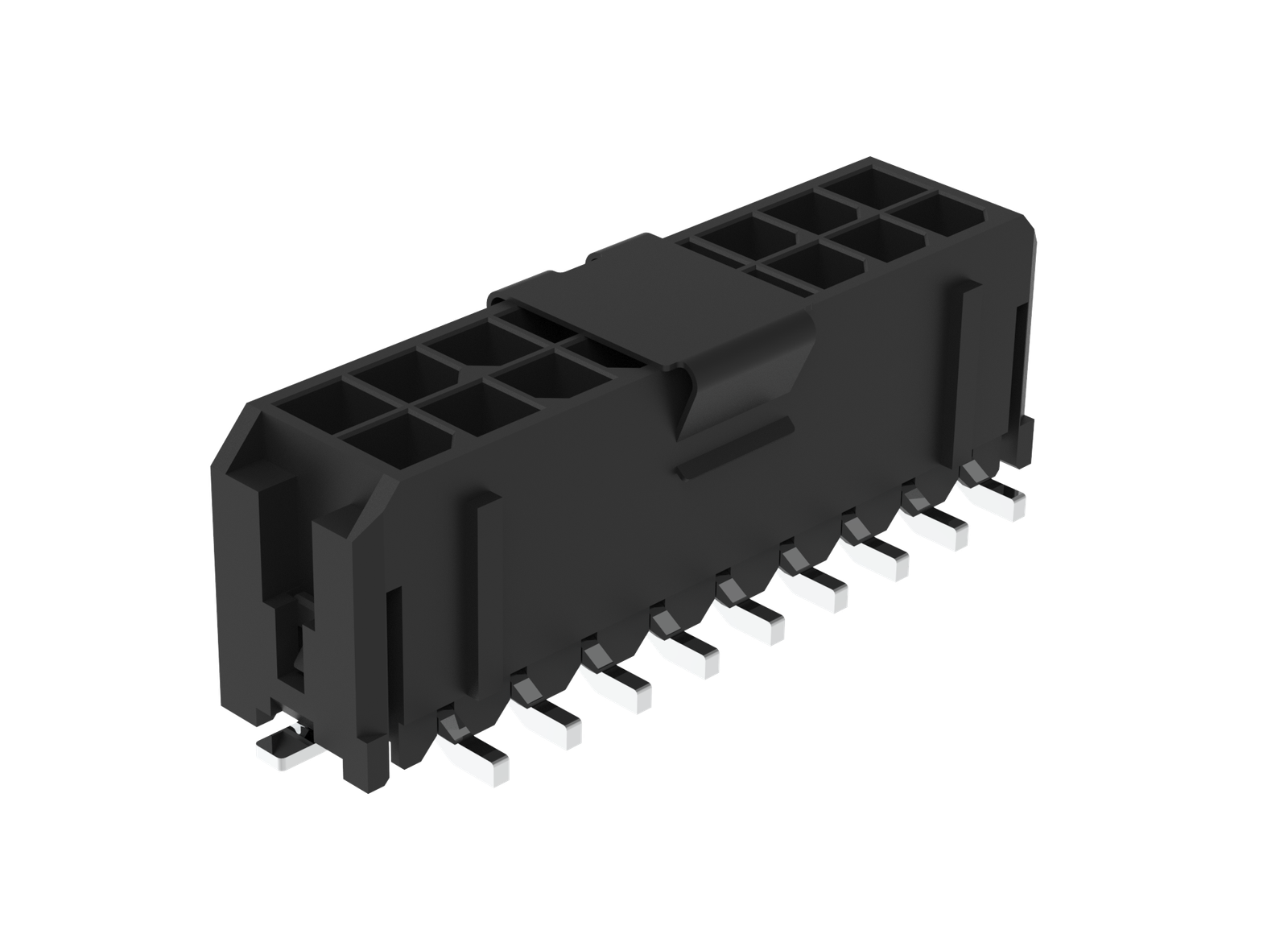 Micro Power 3.0 Connector System – G881 Series, Wire to Board connector, , Vertical, Dual row, 3.0mm pitch, 18 positions , 100μin Tin, LCP, Black, REEL