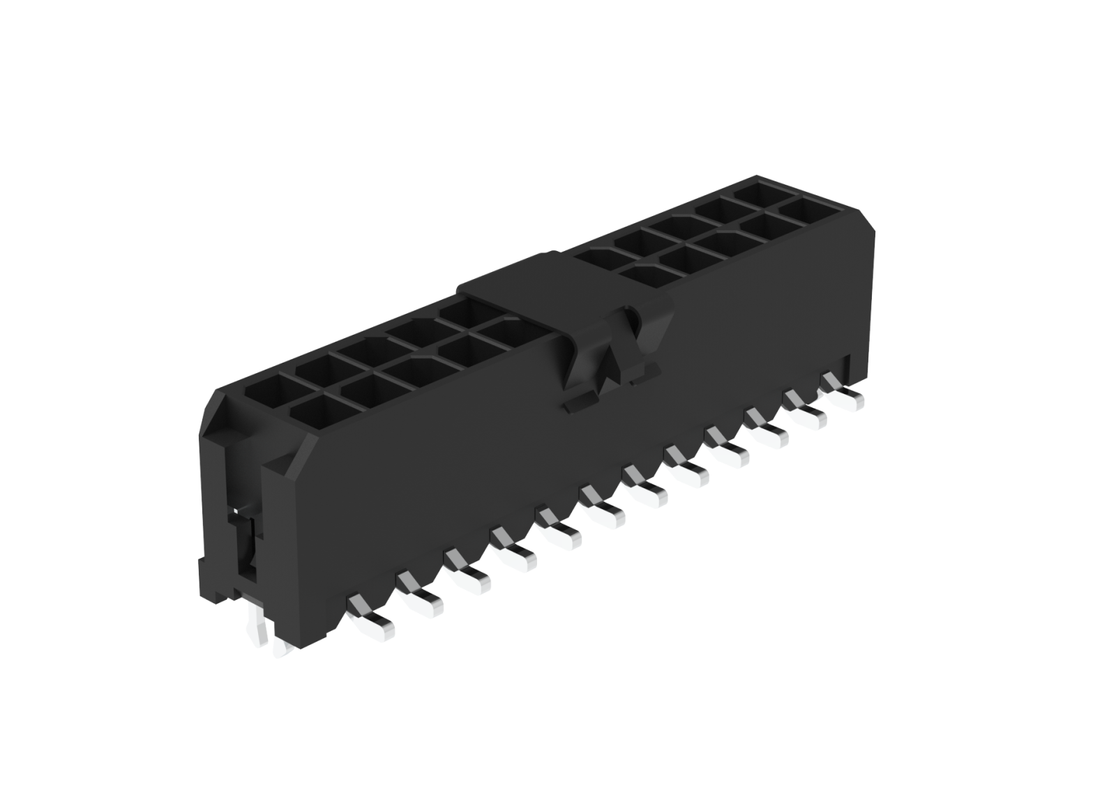 Micro power, Vertical, Dual row, SMT, 3.0mm pitch, 24 positions , 100μin Tin, SMT, 2 board locks, LCP, Black, REEL