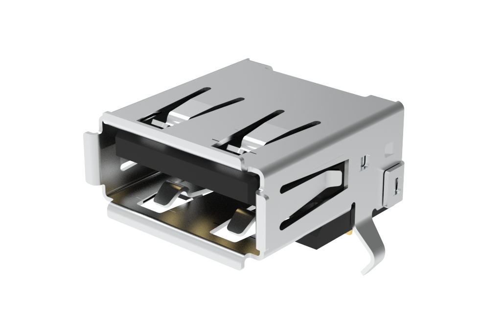 USB 2.0, Type A, Receptacle, Right Angle, 4 Pins, Shell with Nickel Plating, Gold Flash, Dip 2.5mm, Ivory Housing, Tray Packaging