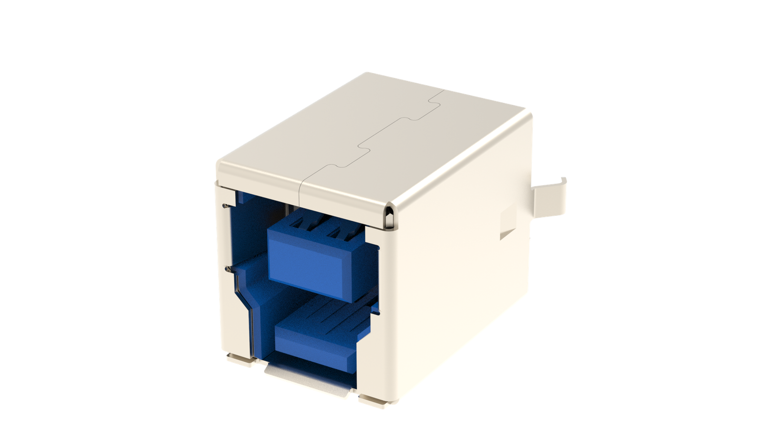 USB 3.2 GEN 2, Type B, Receptacle, Vertical, 9 Pins, Shell Kink with Nickel Plating, 30μin Gold, Dip 2.9mm, Blue Housing, Tray Packaging