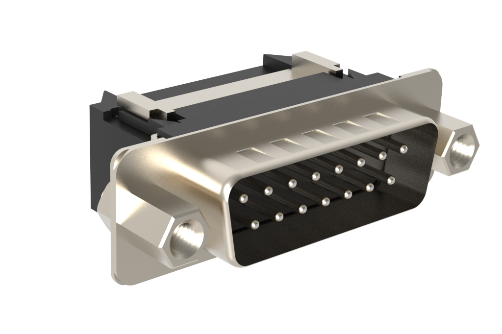 Dsub, Stamped siganl 3A, Straight IDC Flat ribbon, Front Metal Brigth Tin Shell+Grounding Dimples, 15 Pin, 0.38μm (15μin) Gold, 4-40 Removable Front Screwlock