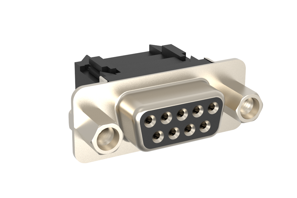 Dsub, Stamped siganl 3A, Straight IDC Flat ribbon, Front Metal Brigth Tin Shell, 09 Socket, 0.38μm (15μin) Gold, 4-40 Removable Front Screwlock