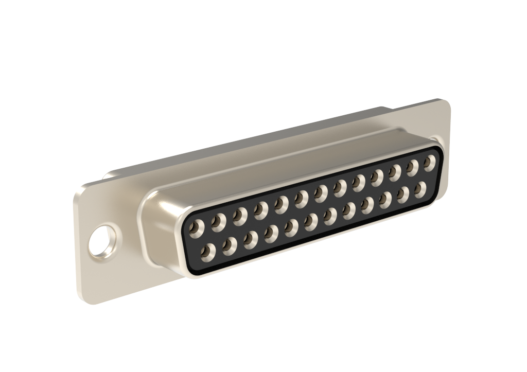 Dsub, Machined Pin 7.5A, Straight PCB Thru Hole, Cnt Length=2.4mm (0.095in), Cnt =1.02mm (0.040in), 25 Socket, Bright Tin Shell, 0.38m (15 in) Gold, 3.1mm (0.122in) Clear Hole, Without Standoff&Boardlock.