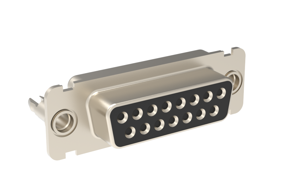 Dsub, Machined signal 7.5A, Straight PCB Thru Hole, Cnt Length=5.5mm (.217in), Cnt =0.6mm (.024in), 15 Socket, Bright Tin Shell, 0.76μm (30μin) Gold, M3 Standoff With Boardlock.