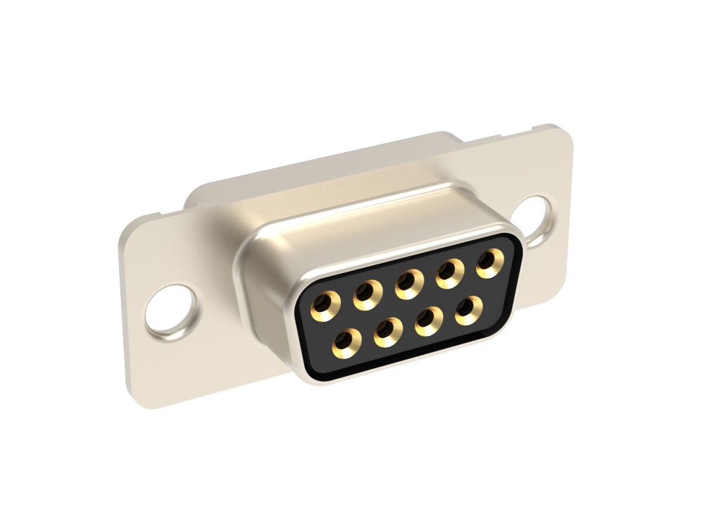 D-Sub Standard Density Connector, Input Output Connectors, Machined Signal 7.5A, Straight Solder Cup, 9 Position Receptacle, Bright Tin Shell, 0.76μm (29.921μin) Gold Plating
