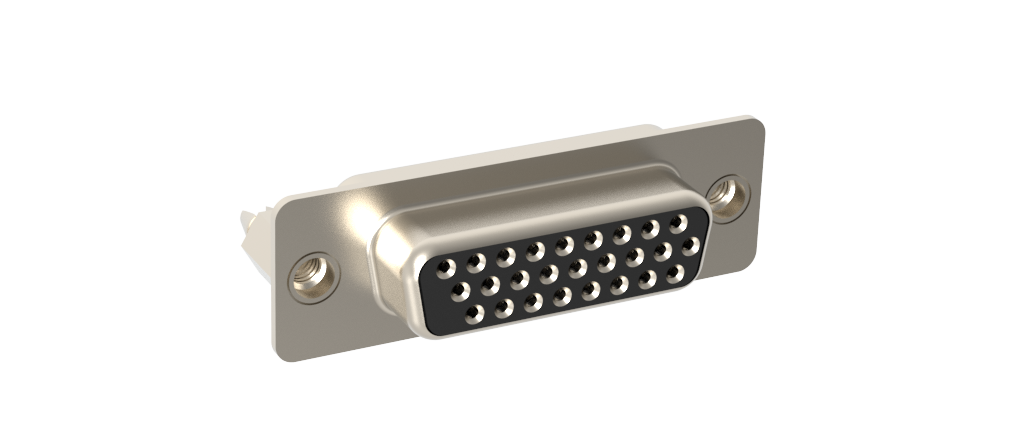 Dsub, Stamped Signal 3A, High Density, Straight PCB Thru Hole, 26 Socket, 0.38m (15 in) Gold, 4-40 Rear Insert, 4-40 Threaded Standoff 6.0mm (0.236″), With Boardlock 4.2mm (0.165″).