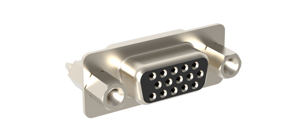 Dsub, Stamped Signal 3A, High Density, Straight PCB Thru Hole, 15 Socket, 0.38m (15 in) Gold, 4-40 Fixed Front Screwlock, Standoff 6.0mm (0.236″), With Boardlock 4.2mm (0.165″).