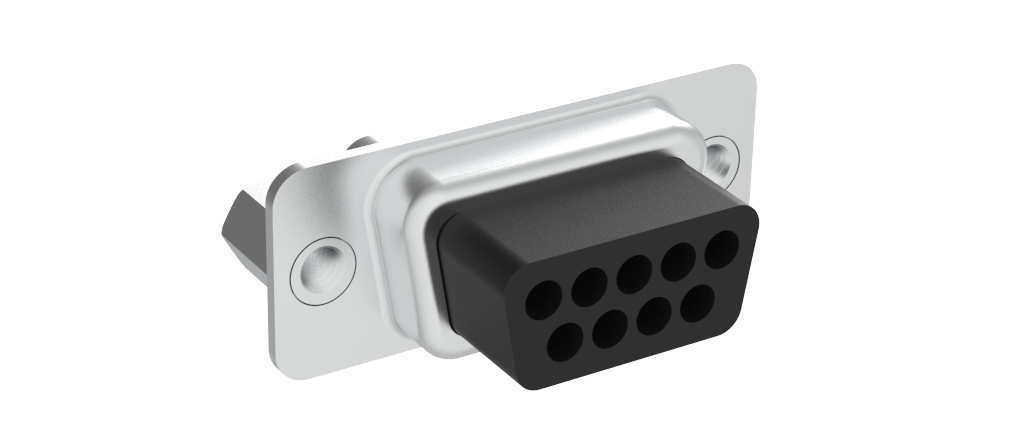 Dsub, Straight, Std Density, Crimp & Poke, Bright Tin Shell, 09 Socket, 4-40 Fixed Front Screwlock