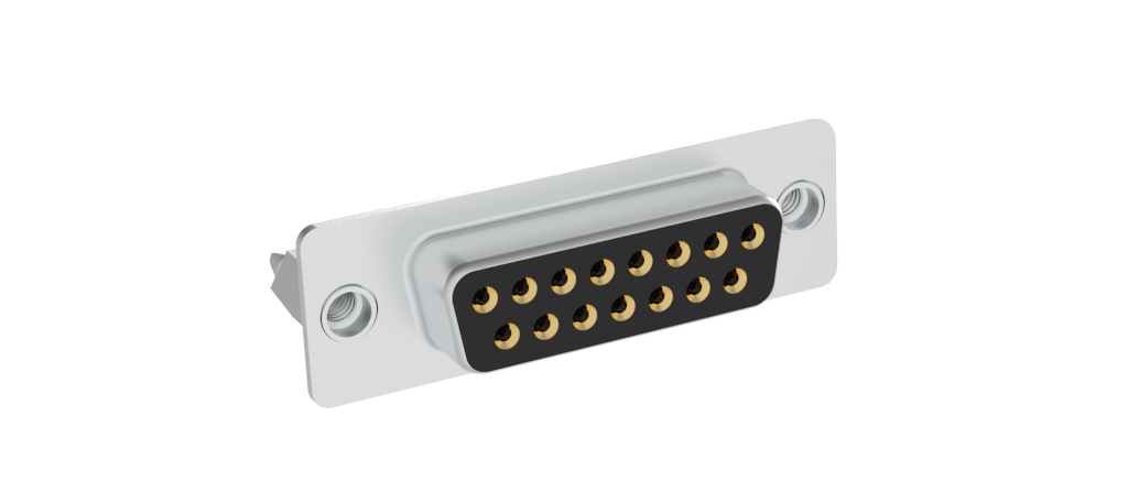 Dsub, Stamped Signal 3A, Straight PCB Thru Hole, 15 Socket, 0.38μm (15μin) Gold, Bright Tin Shell, M3 Threaded Standoff 6.0mm (0.236in), With Boardlock 4.2mm (0.165in)