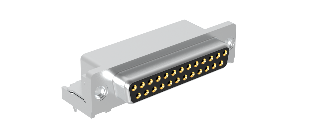 Dsub, Stamped Signal 3A, Right Angle PCB Through Hole, FP=10.40mm (0.409in), Row Pitch 2.54mm, 25 Socket, 0.38m (15in) Gold, Bright Tin Shell, 4-40 Rear Insert, Ground Tab with Boardlock