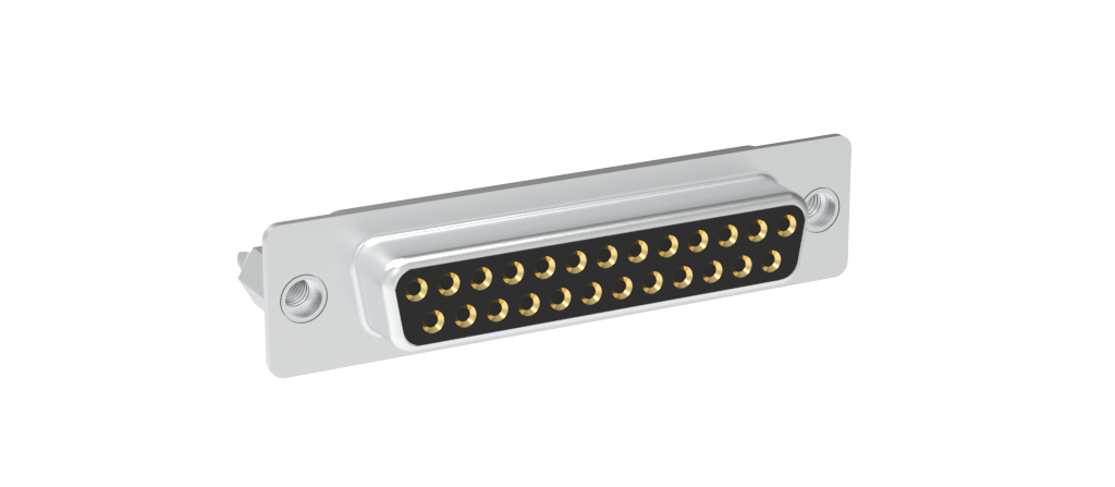 Dsub, Stamped Signal 3A, Straight PCB Thru Hole, 25 Socket, 0.38μm (15μin) Gold, Bright Tin Shell, M3 Threaded Standoff 6.0mm (0.236in), With Boardlock 4.2mm (0.165in)