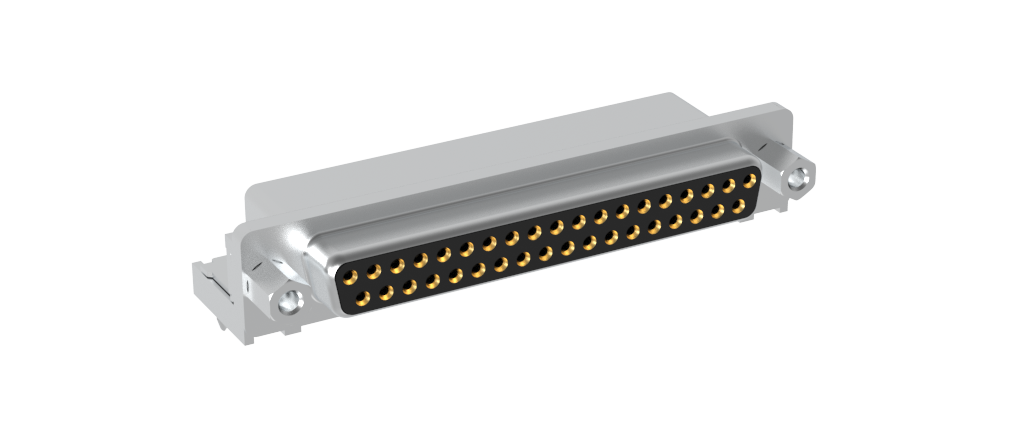 Dsub, Stamped Signal 3A, Right Angle PCB Through Hole, FP=10.40mm (0.409in), Row Pitch 2.54mm, 37 Socket, 0.38m (15in) Gold, Bright Tin Shell, 4-40 Front Screwlock, Ground Tab with Boardlock