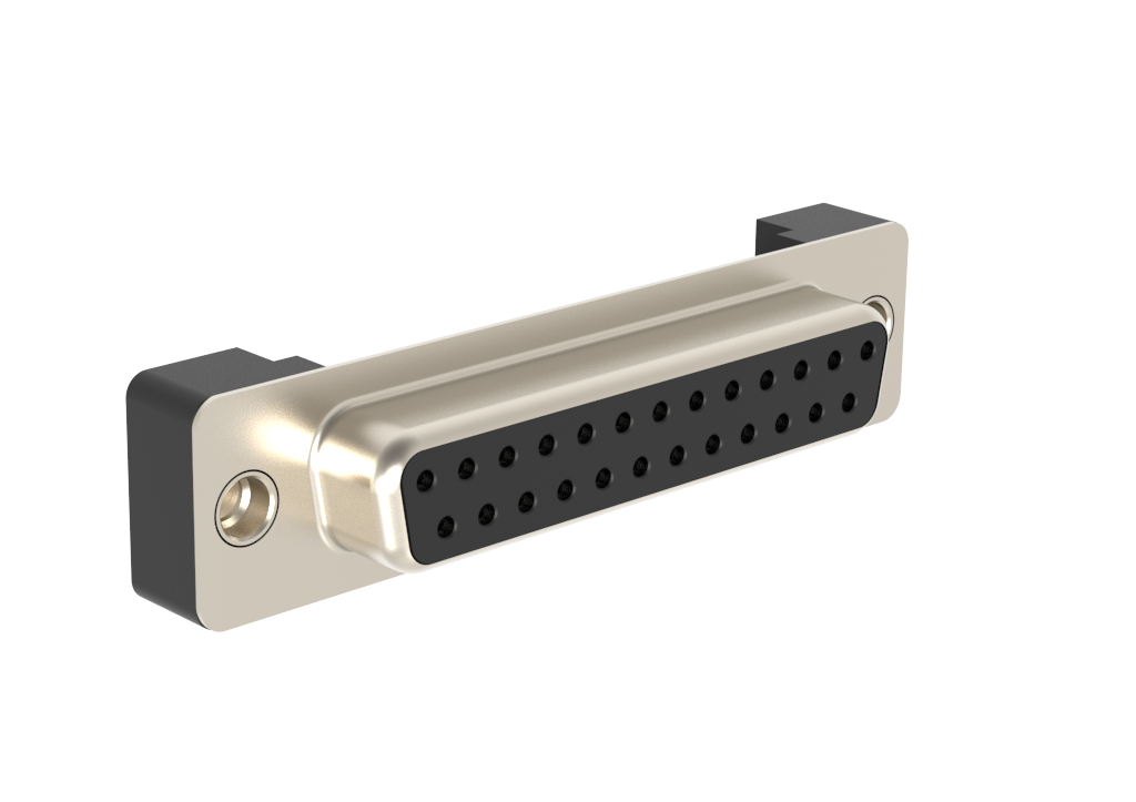 Dsub, Stamped Signal 3A, Straight PCB Thru Hole Low Profile, Height=6.02mm (.237in), 25 Socket, Bright Tin Shell, 0.38μm (15μin) Gold, 4-40 Threaded Rear Insert