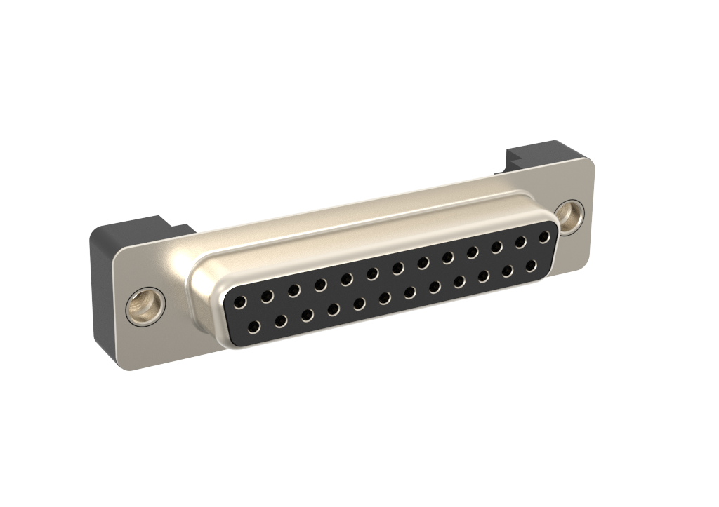 Dsub, Stamped Signal 3A, Straight PCB Thru Hole Low Profile, Height=6.02mm (.237in), 25 Socket, Bright Tin Shell, 0.38μm (15μin) Gold, 4-40 Threaded Boardlock