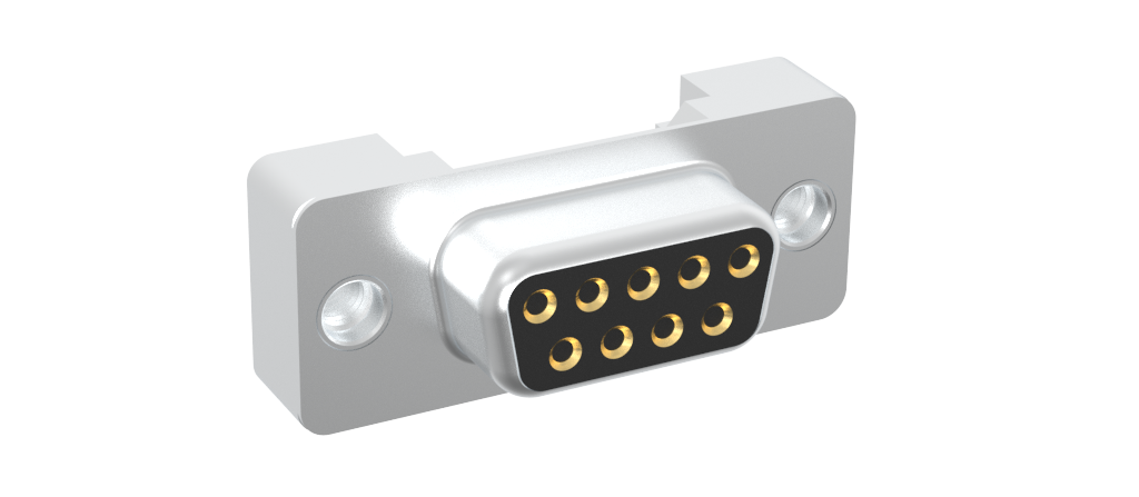 Dsub, Stamped Signal 3A, Straight PCB Thru Hole Low Profile, Height=6.02mm (.237in), 9 Socket, Bright Tin Shell, 0.38μm (15μin) Gold, M3 Threaded Rear Insert
