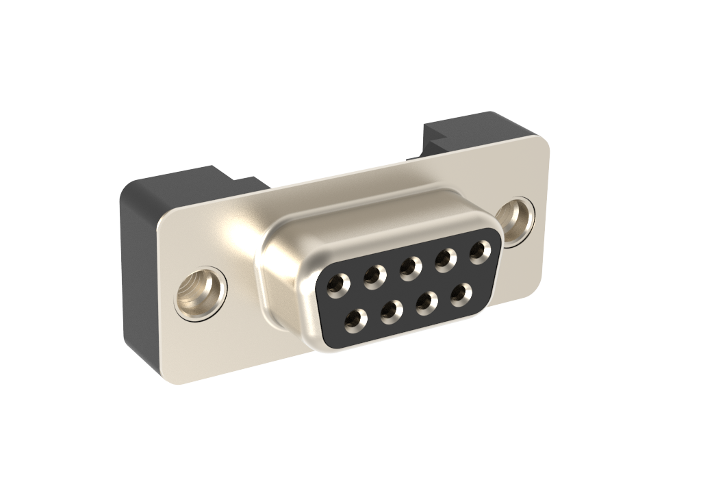 Dsub, Stamped Signal 3A, Straight PCB Thru Hole Low Profile, Height=6.02mm (.237in), 9 Socket, Bright Tin Shell, 0.38μm (15μin) Gold, 4-40 Threaded Rear Insert