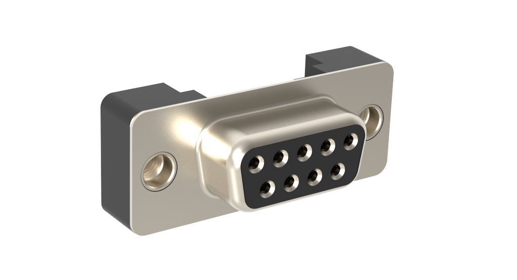 Dsub, Stamped Signal 3A, Straight PCB Thru Hole Low Profile, Height=6.02mm (.237in), 9 Socket, Bright Tin Shell, 0.38μm (15μin) Gold, 4-40 Threaded Boardlock