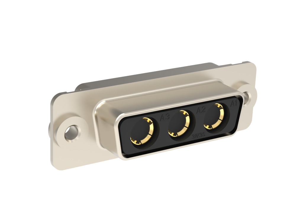 Dsub, Machined Hybrid, 3W3, Power (20A) Contacts Only, Socket, Straight PCB Thru Hole, Bright Tin Shell, 0.76m (30 in) Power, Float Mounting, Without Standoff&Boardlock