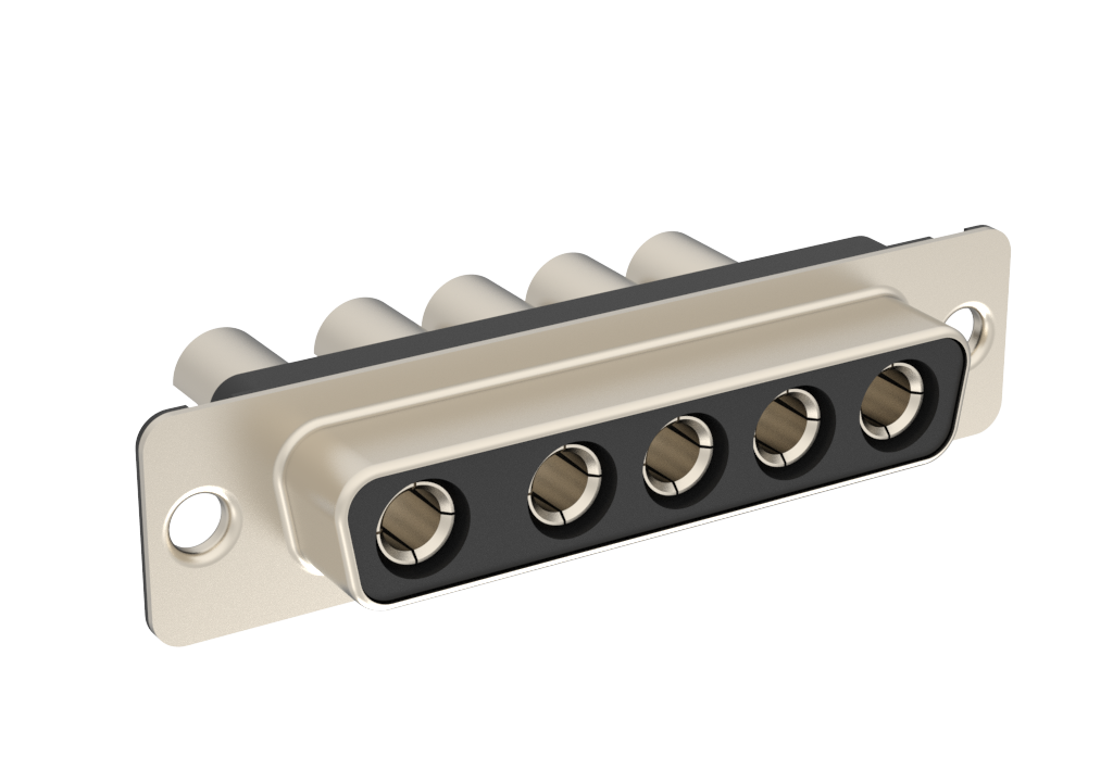 Dsub, Machined Hybrid, 5W5, Power (40A) Contacts Only, Socket, Soldercup Cable Mount, Bright Tin Shell, 3.05mm (.120in) Clear Hole