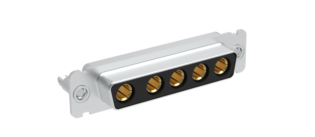 Dsub, Machined Hybrid, 5W5, Power (40A) Contacts Only, Socket, Straight PCB Thru Hole, Bright Tin Shell, 0.76m (30 in) Power, M3 Threaded Standoff (Panel Side) with Boardlock