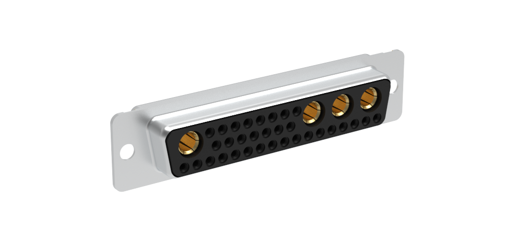 Dsub, Machined Hybrid, 36W4, Power (20A)&Signal (7.5A) Contacts, Socket, Straight PCB Thru Hole, Bright Tin Shell, 0.76m (30 in) Power&0.76m (30 in) Signal, 3.05mm (0.120in) Clear Hole, Without Standoff&Boardlock