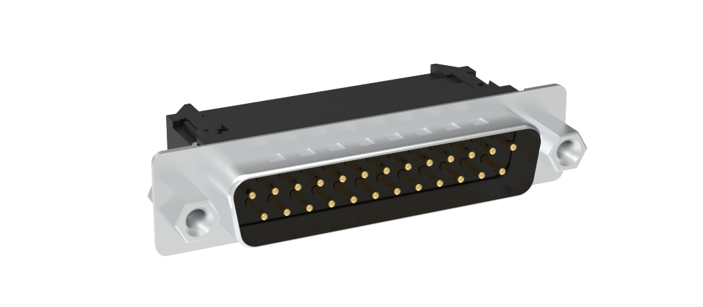 D-Sub Standard Density Connector, Input Output Connectors, Stamped Signal 3A, Straight IDC Flat ribbon, Front Metal Bright Tin Shell with Grounding Dimples, 25 Position Plug, Flash Gold, M3 Removable Front Screwlock