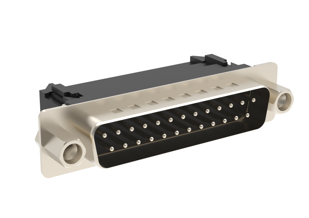 Dsub, Stamped Signal 3A, Straight IDC Flat ribbon, Front Metal Bright Tin Shell+Grounding Dimples, 25 Pin, Flash Gold, 4-40 Fixed Front Screwlock