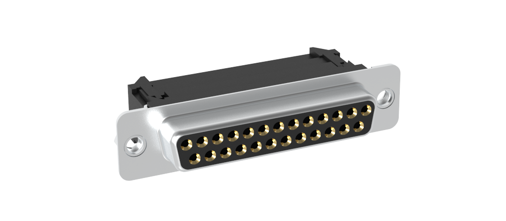 Dsub, Stamped Signal 3A, Straight IDC Flat ribbon, Front Metal Bright Tin Shell, 25 Socket, Flash Gold, 4-40 Rear Insert