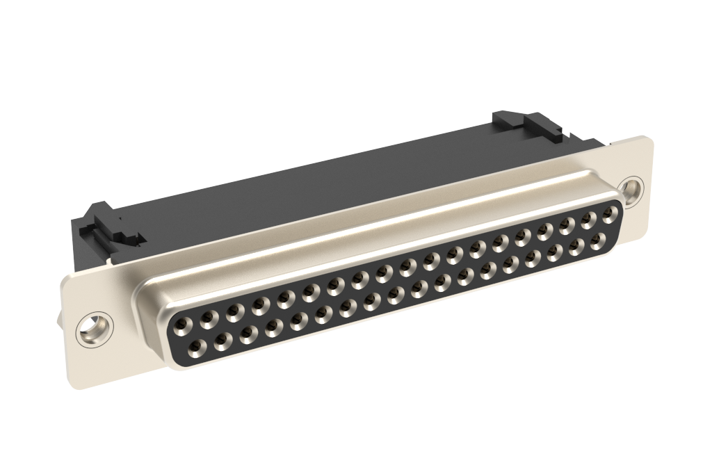 Dsub, Stamped Signal 3A, Straight IDC Flat ribbon, Front Metal Bright Tin Shell, 37 Socket, Flash Gold, M3 Rear Insert