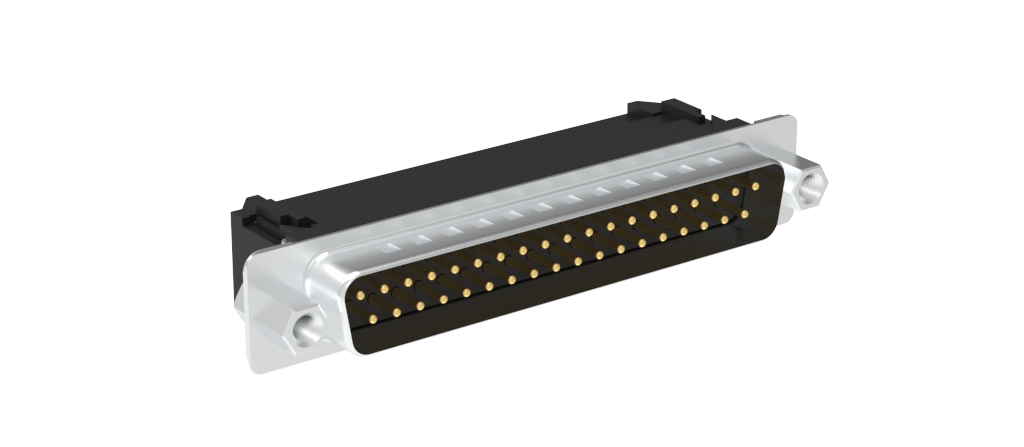 Dsub, Stamped Signal 3A, Straight IDC Flat ribbon, Front Metal Bright Tin Shell+Grounding Dimples, 37 Pin, Flash Gold, 4-40 Fixed Front Screwlock