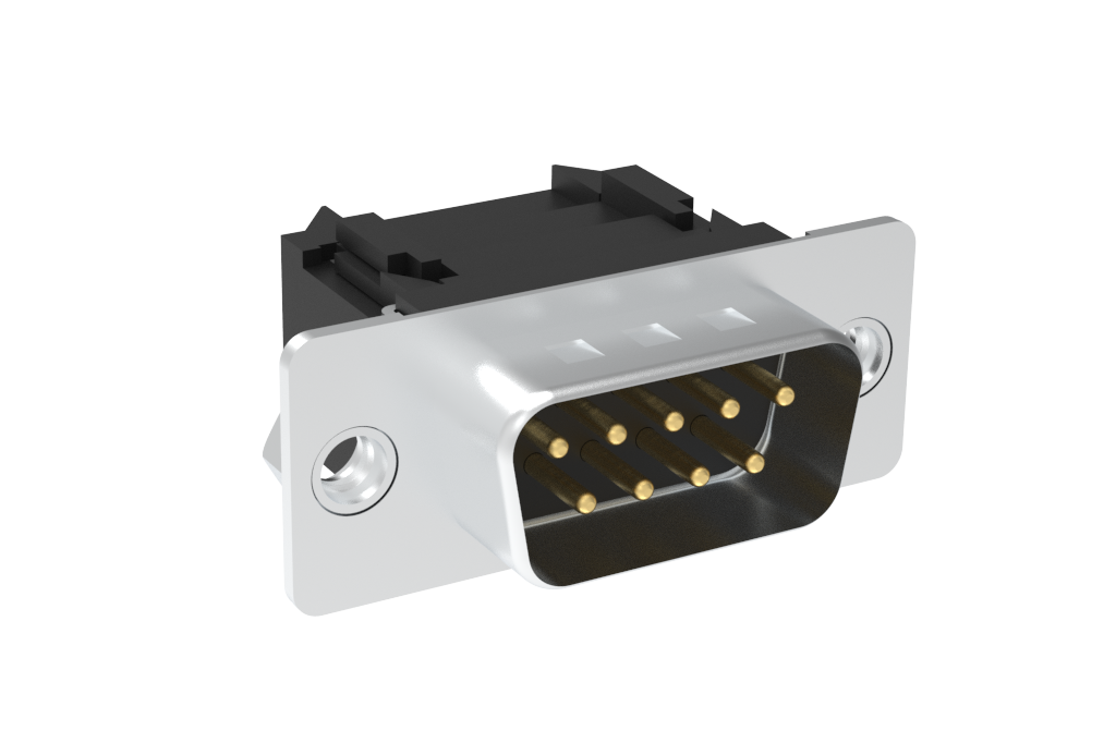 Dsub, Stamped siganl 3A, Straight IDC Flat ribbon, Front Metal Brigth Tin Shell+Grounding Dimples, 09 Pin, 0.76μm (30μin) Gold, M3 Rear Insert