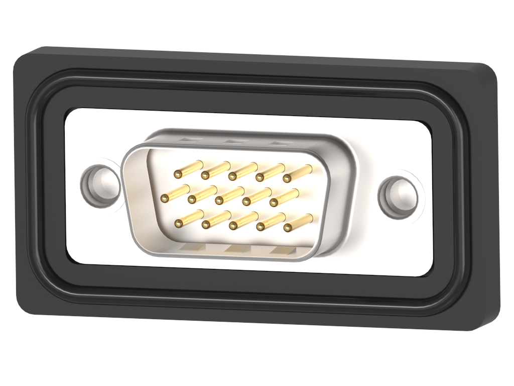 Dsub IP67 waterproof, HD 15M,G/F,straight PCB with stand off and boardlocks