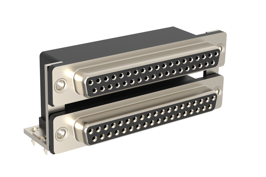 Dsub, Stamped Signal 3A, Dual Port Right Angle PCB Thru Hole, F=15.88mm (0.625in), 37/37 (Socket/Socket), 0.38m (15 in) Gold, Bright Tin Shell, M3 Threaded Rear Insert, 4*Arrowhead Boardlock