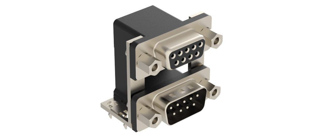 Dsub, Stamped Signal 3A, Dual Port Right Angle PCB Thru Hole, F=19.05mm (0.750in), 9/9 (Socket/Pin), 0.76m (30 in) Gold, Bright Tin Shell, 4-40 Removable Front Screwlock, 4*Arrowhead Boardlock