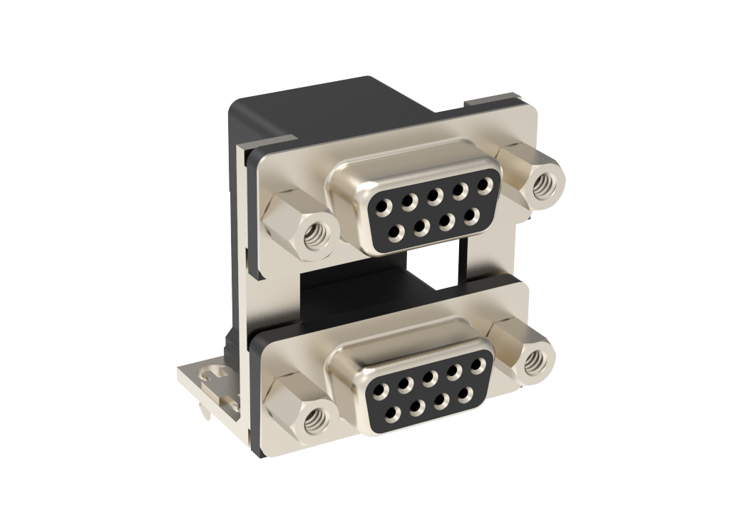 Dsub, Stamped Signal 3A, Dual Port Right Angle PCB Thru Hole, F=19.05mm (0.750in), 9/9 (Socket/Socket), 0.76m (30 in) Gold, Bright Tin Shell, 4-40 Removable Front Screwlock, 2*Arrowhead Boardlock