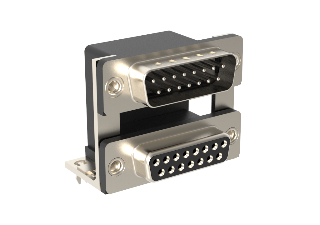 Dsub, Stamped Signal 3A, Dual Port Right Angle PCB Thru Hole, F=19.05mm (0.750in), 15/15 (Pin/Socket), 0.76m (30 in) Gold, Bright Tin Shell, 4-40 Threaded Rear Insert, 2*Arrowhead Boardlock