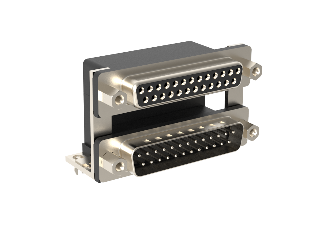D-Sub Dual Port Connectors, Input Output Connectors, Stamped Signal 3A, Stacked Right Angle PCB Thru Hole, F=19.05mm (.750in), 25/25 (Socket/Pin), 0.76
