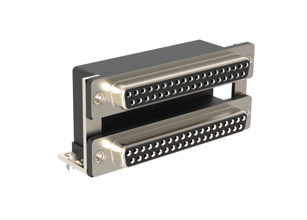 Dsub, Stamped Signal 3A, Dual Port Right Angle PCB Thru Hole, F=19.05mm (0.750in), 37/37 (Socket/Socket), 0.76m (30 in) Gold, Bright Tin Shell, 4-40 Threaded Rear Insert, 2*Arrowhead Boardlock