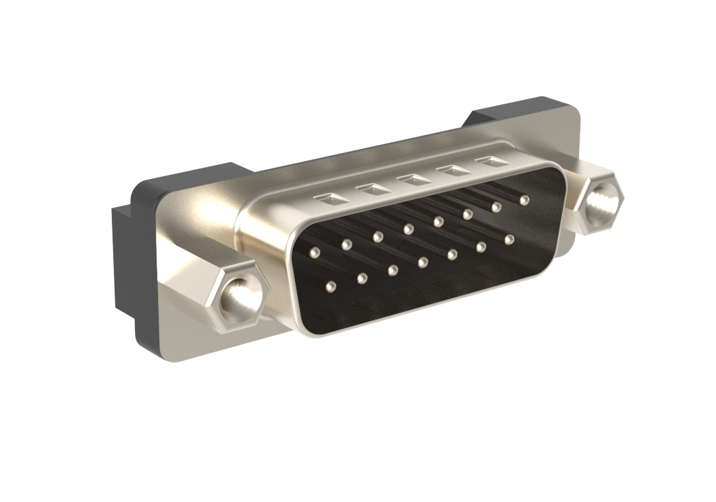 Dsub, Stamped Signal 3A, Straight PCB Thru Hole, High Temp Std Density, H=6.02mm (0.237in), 15 Pin, Bright Tin Shell+Grounding Dimples, 0.76m (30 in) Gold, M3 Removable Front Screwlock, M3 Threaded Boardlock, Plastic Tray