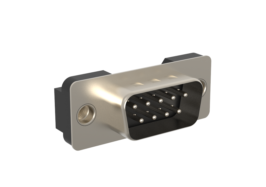 Dsub, Stamped Signal 3A, Straight PCB Thru Hole, High Temp Std Density, H=6.02mm (0.237in), 09 Pin, Bright Tin Shell+Grounding Dimples, Flash Gold, 4-40 Threaded Boardlock, Plastic Tray