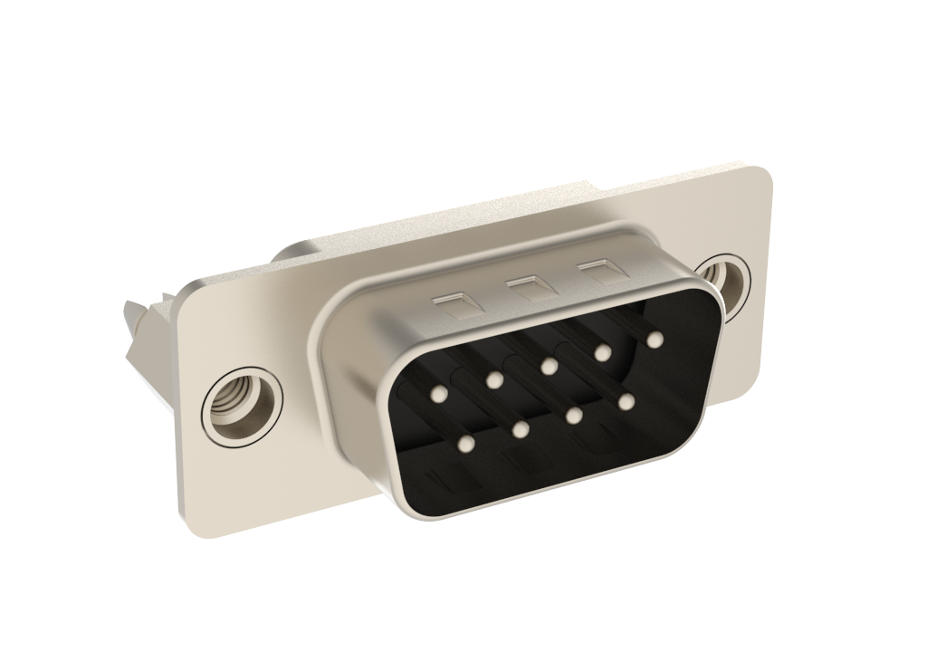 Dsub, Stamped Signal 3A, Straight PCB Thru Hole, 09 Pin, 0.76μm (30μin) Gold, Bright Tin Shell+Grounding Dimples, 4-40 Threaded Standoff 6.0mm (0.236in), With Boardlock 4.2mm (0.165in)