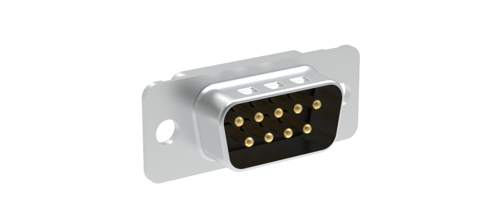 Dsub, Machined Pin 7.5A, Straight Soldercup, 09 Pin, Bright Tin Shell+Grounding Dimples, 0.38m (15 in) Gold, 3.1mm (0.122in) Clear Hole