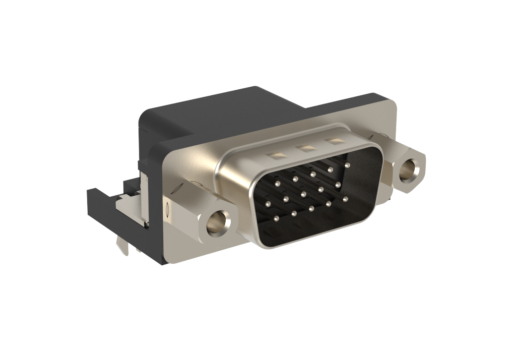 Dsub, Stamped Signal 3A, High Density, Right Angle PCB Through Hole, FP=8.89mm (0.35μin), 15 Pin, 0.38m (15 in) Gold, M3 Front Screwlock, Ground Tab, With Boardlock