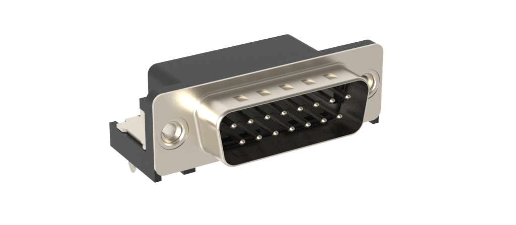 Dsub, Stamped Signal 3A, Right Angle PCB Through Hole, FP=10.40mm (0.409in), Row Pitch 2.54mm, 15 Pin, 0.38m (15in) Gold, Bright Tin Shell+Grounding Dimples, M3 Rear Insert, Ground Tab with Boardlock