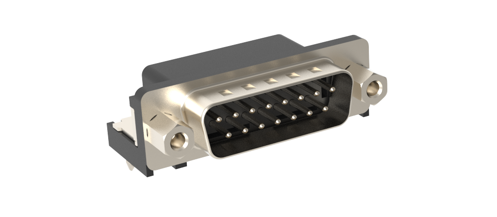 Dsub, Stamped Signal 3A, Right Angle PCB Through Hole, FP=10.40mm (0.409in), Row Pitch 2.54mm, 15 Pin, 0.38m (15in) Gold, Bright Tin Shell+Grounding Dimples, 4-40 Front Screwlock, Ground Tab with Boardlock