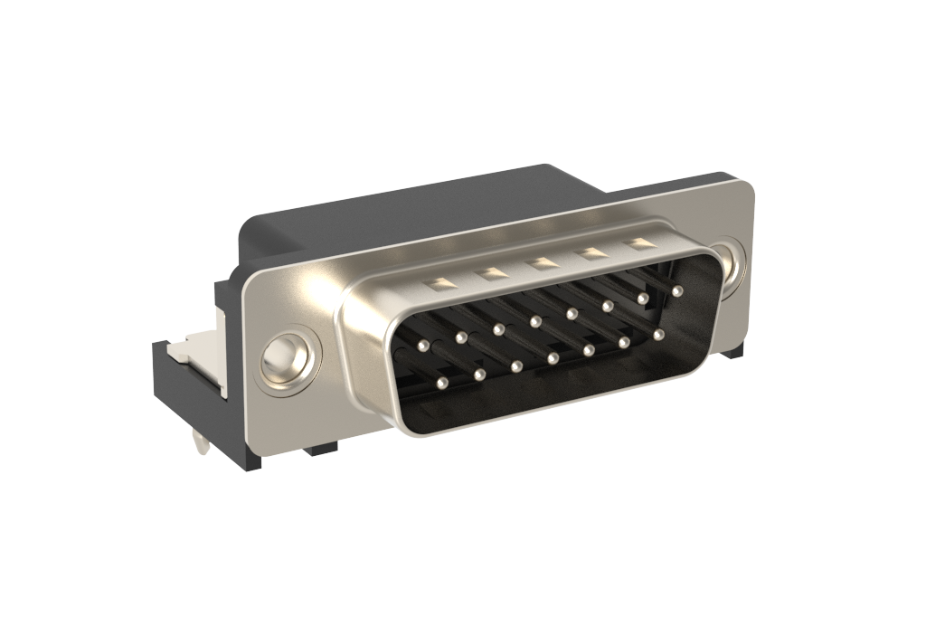 Dsub, Stamped Signal 3A, Right Angle PCB Through Hole, FP=10.40mm (0.409in), Row Pitch 2.54mm, 15 Pin, 0.38m (15in) Gold, Bright Tin Shell+Grounding Dimples, 4-40 Rear Insert, Ground Tab with Boardlock